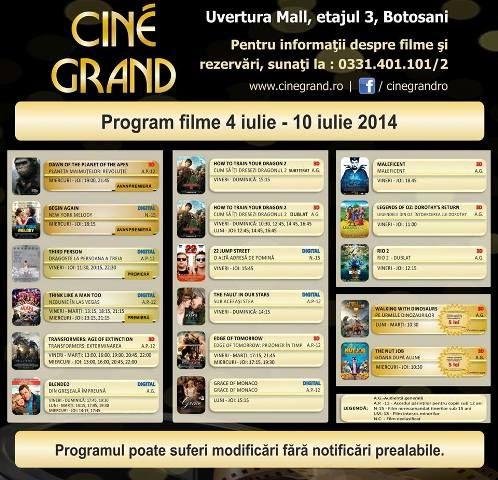 În perioada 27 iunie - 3 iulie 2014, la Cine Grand din incinta Uvertura Mall vor rula 17 filme. Vezi care sunt acestea și la ce ore rulează: