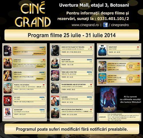 În perioada 25 - 31 iulie 2014, la Cine Grand din incinta Uvertura Mall vor rula 15 filme. Vezi care sunt acestea și la ce ore rulează: