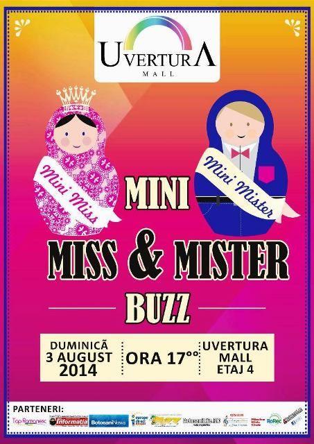 Sâmbătă, 2 august, începând cu ora 11:00, în cadrul emisiunii "Cheia Sol", vor avea loc preselecțiile pentru concursul ”Mini Miss & Mister Buzz 2014” la etajul 4, Uvertura Mall.