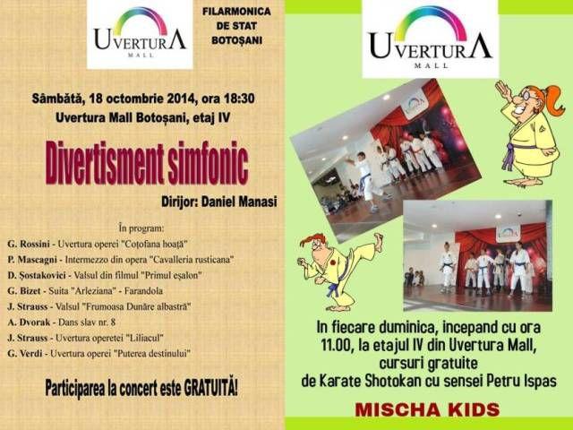Sâmbătă, 18 octombrie, începând cu ora 18:30 la etajul patru al Uvertura Mall, va avea loc evenimentul ”Divertisment simfonic”, un extraordinar recital susținut de Filarmonica de Stat Botoșani, dirijat de Daniel Manasi.