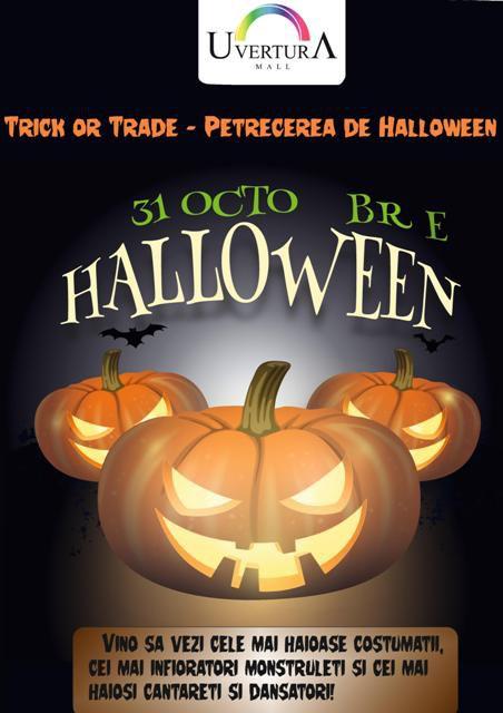 Vineri, 31 octombrie, la etajul 4 al Uvertura Mall va fi „Trick or Trade - Petrecerea de Halloween”, o petrecere incendiară, bantuită de costume fioroase si muzica specifica pentru distractie sinistru de placuta, atât pentru copii cât și pentru tineri.