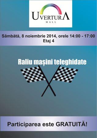 Sâmbătă, 8 noiembrie, între orele 14:00 – 17:00,  la etajul patru al Uvertura Mall, va avea loc un raliu cu mașini teleghidate. La eveniment sunt așteptați toți copii dornici de distracție și care doresc să își îmbunătățească reflexele.