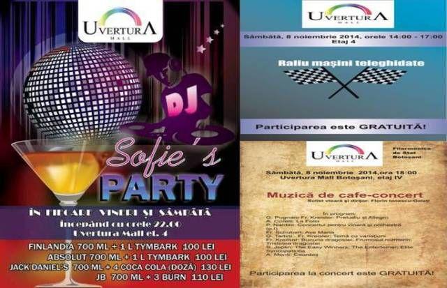 Vineri și Sâmbătă, începând cu orele 22:00 la etajul patru al Uvertura Mall, vor avea loc petreceri cu muzică bună și jocuri de lumini cu DJ-i de excepție.