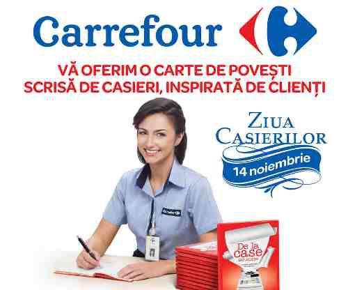 Pentru prima data în România, Carrefour sărbătorește ziua casierilor, dedicând data de 14 noiembrie angajaților de la casele de marcat. Pentru a marca această ocazie, Carrefour lansează cartea „De la case adunate”, un volum ce adună povești adevărate, amuzate sau emoționante, scrise de către casieri și inspirate de clienți.