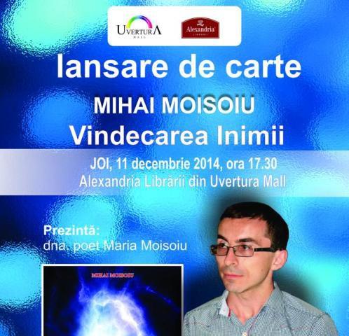Alexandria Librării, Uvertura Mall Botosani și Centrul de Explorare şi Dezvoltare a Potenţialului Uman organizează joi, 11 decembrie 2014 evenimentul de lansare a cărții „Tehnici de eliberare emoţională-Vindecarea inimii”, autor Psiholog Moisoiu Mihai Marius. Evenimentul va avea loc în fata librariei Alexandria din Uvertura Mall Botosani la ora 17.30, iar cartea va fi prezentata de doamna poet Maria Moisoiu.