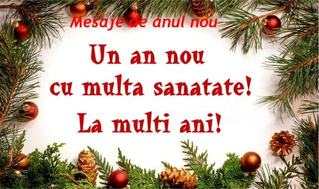 Lăsaţi o parte din lumina artificiilor aprinse în noaptea anului Nou să vă lumineze. Fie ca anul care vine să fie pentru voi o punte spre ceva mai bun, mai luminos. Tot ce vă este de folos să se realizeze şi nimic să nu vă înnoureze cerul senin al vieţii! Anul Nou să vă dăruiască sănătate, pace în suflet şi prosperitate.