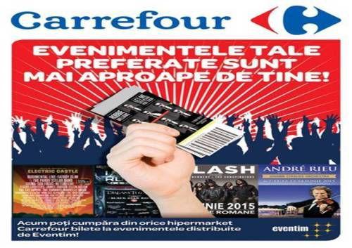 Începând cu luna aprilie, clienții hipermarketurilor Carrefour din întreaga țară pot achiziționa bilete la evenimentele distribuite de Eventim, direct de la Biroul de Recepție Clienți aflat la intrarea în magazine.