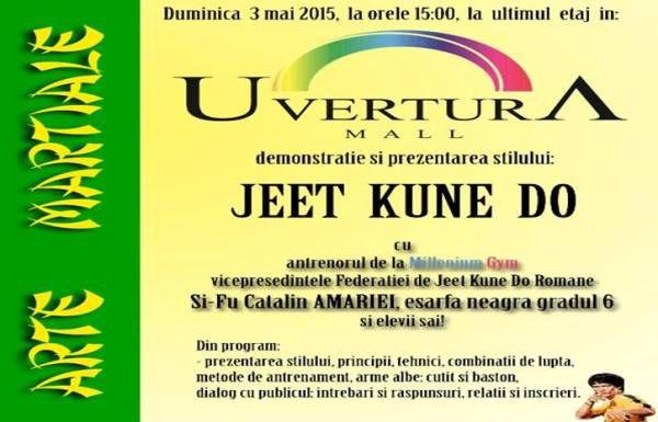 Duminică, 3 mai 2015, copii și tinerii dornici de mișcare și interesați să învețe stilul lui Bruce Lee sunt invitați să participe la demonstrații, începând cu orele 15:00, la etajul 4 al Uvertura Mall.