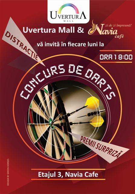 Uvertura Mall și Navia Cafe invită amatorii și pasionații de darts la un concurs cu premii și distracție, luni, 1 iunie 2015, începând cu orele 18:00.