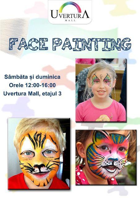 În acest weekend, între orele 12:00 – 16:00, la etajul trei al Uvertura Mall, toți copii dornici de distracție și cu imaginație sunt așteptați pentru facepainting.