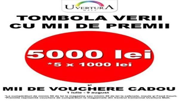 Între 1 Iulie şi 9 August 2015 Uvertura Mall organizează Tombola Verii iar mii de cumpărători vor fi premiaţi cu vouchere de cumpărături.