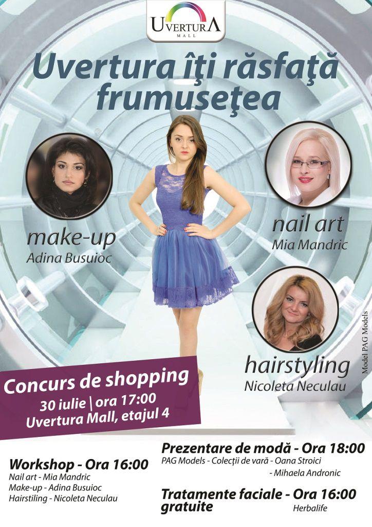 Frumuseţea nu are vârstă, dar are nevoie de atenţie! De aceea, Uvertura Mall pregăteşte pentru data de 30 iulie un eveniment dedicat tuturor doamnelor şi domnişoarelor, o zi de răsfăţ şi de sfaturi utile în materie de Make-Up, Nail Art, Hair-Style şi Fashion, oferite de profesionişti în domeniu.