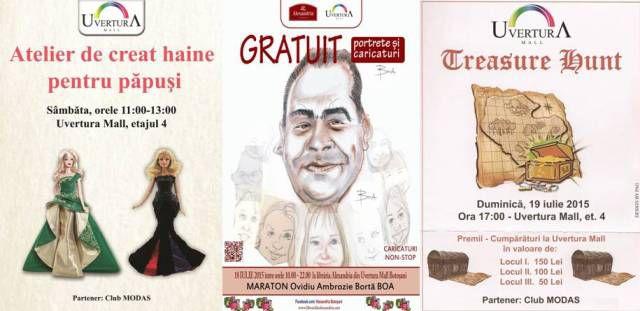 Umor, divertisment, culoare, artă, frumuseţe, shopping, toate vă aşteaptă în acest week-end la Uvertura Mall. Toţi clienţii care vor veni în acest week-end la Uvertura Mall pentru a profita de reducerile de vară vor avea şansa să participe la Tombola Verii unde premiile sunt de peste 5000 de lei.