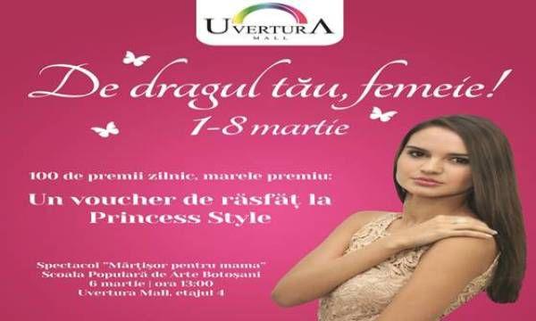 „De dragul tău, femeie!”, pentru că emani energie și frumusețe, pentru tot ceea ce reprezinți și pentru că timpul se oprește puțin în loc la fiecare început de primăvară, să îți aducă un omagiu, Uvertura Mall a pregătit numeroase evenimente.
