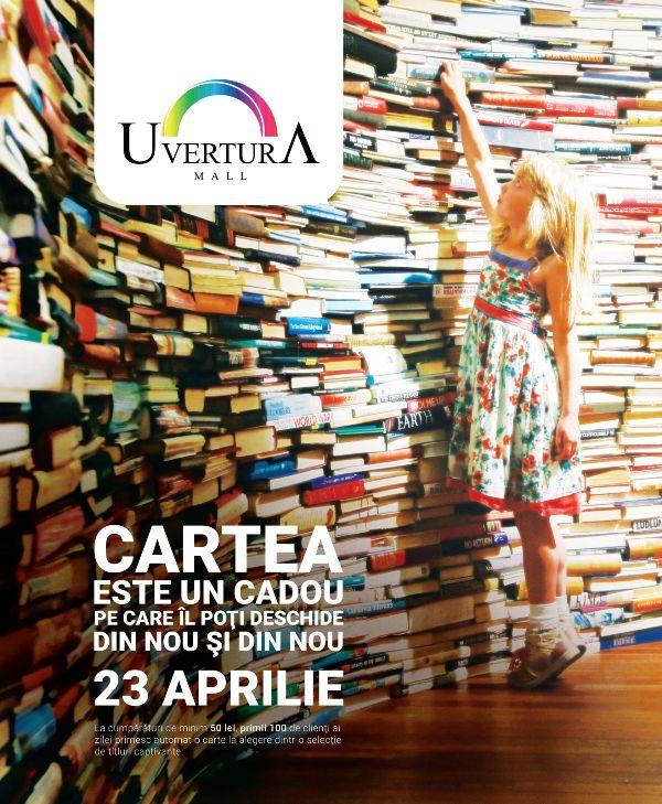 Așa cum ne-a obișnuit, mall-ul, prin activitățile sale promovează shoppingul imbinat cu relaxarea, divertismentul și cultura, o dovadă fiind inedita campanie „Cartea este un cadou pe care îl poți deschide din nou și din nou”. Primii 100 de clienți ai zilei de 23 aprilie, care se prezintă la punctul de premiere amplasat la parter, cu un bon de cumpărături de la magazinele din mall, de minim 50 de lei, vor primi un dar prețios, o carte dintr-o selecție de titluri captivante. În plus, prin proiectul ”Pași spre bibliotecă”, toți cei care vor să contribuie la inițiativa centrului comercial de a dărui educație prin dotarea unei biblioteci școlare, sunt rugați să doneze cărți, în urna de la parter, în perioada 23-24 aprilie.