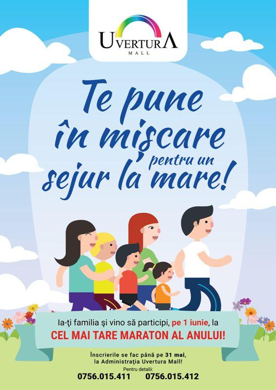 Pentru copilul din fiecare dintre noi, Uvertura organizează începând cu orele 17:00, în parcare, un concurs inedit de tip maratonpentru părinți, copii sau frați, menit să aducă zâmbetul pe buzele membrilor familiilor ce vor participa. Distracția și voia bună sunt ca și asigurate, întrucât participanții vor alerga ținându-se de mâini. Eforturile lor vor fi răsplătite prin numeroase premii, iar câștigătorii locului întâi vor putea savura clipele petrecute alături de familie într-un sejur la mare, pe litoralul românesc.