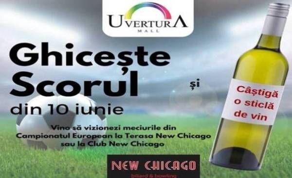 Toți cei care iubesc acest sport și care vor să se distreze urmărind meciurile din Campionat la terasa sau clubul New Chicago, de la etajul 4, din Uvertura Mall au parte de o provocare inedită, aceea de a ghici scorul final, provocare care le poate aduce câte un premiu instant ce constă într-o sticlă de vin.