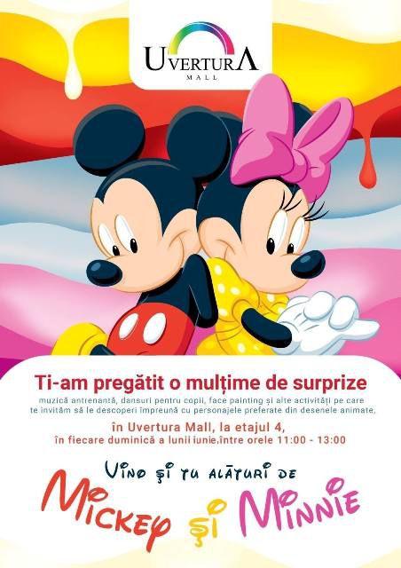 Duminică ne relaxăm cu Mickey și Minnie de la ora 11:00 și cu toți copiii care vor să cânte, să danseze, să se joace sau să se fotografieze cu personajele Disney preferate.