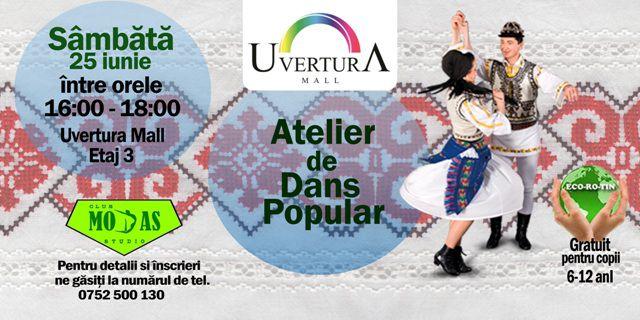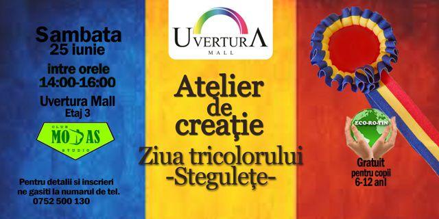 Sâmbătă, 25 iunie, începând cu orele 14:00, Uvertura Mall în colaborare cu Club Modas Studio organizează Atelierul gratuit de Creație, unde sunt așteptați toți copiii cu vârsta cuprinsă între 6 și 14 ani să confecționeze prin diferite tehnici tricolorul românesc, sub îndrumarea moderatorilor. De la ora 16:00, continuăm să promovăm tradițiile românești prin dansuri populare. Fie că le sunt cunoscuți pașii sau nu, copiii sunt așteptați să se prindă în cea mai mare horă moldovenească organizată la Uvertura Mal.