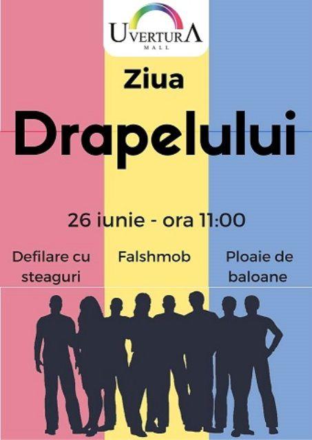 Duminică, 26 iunie este Ziua Drapelului Național al României, zi instituită în 1848 când Guvernul revoluționar a decretat ca Tricolorul - roșu, galben și albastru - să reprezinte steagul național al tuturor românilor. Cele trei culori împărțite în mod egal reprezintă principiul egalității, orientarea culorilor în sus semnifică verticalitatea, iar cifra trei este considerată numărul perfect. Uvertura Mall va marca această zi, de la ora 11:00, prin sute de baloane colorate care vor fi aruncate de pe centrul comercial și printr-un flash mob în colaborare cu G-Power, Club Modas Studio și Acțiunea 2012.. Toți botoșănenii sunt invitați să se alăture bucuriei și dansului.