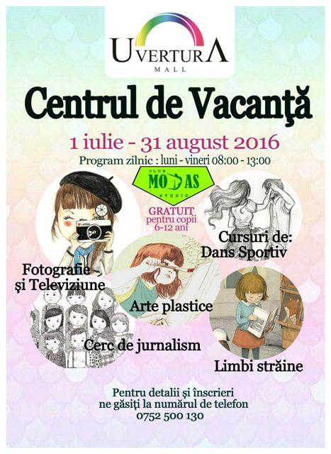 Vineri, 01 iulie deschidem oficial Centrul de Vacanță care se adresează în mod gratuit tuturor copiilor cu vârsta cuprinsă între 6 și 14 ani, care își doresc să experimenteze lucruri noi și să își valorifice pasiunile și talentele prin interacțiunea cu copii de diferite vârste, în cadrul atelierelor propuse. Vă așteptăm, în fiecare zi, de luni până vineri, între orele 08:00-13:00, la etajul 3, lângă acvariu.