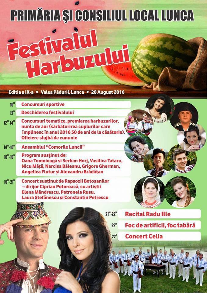 Festivalul Harbuzului va avea loc pe 28 august în comuna Lunca. Organizatorii Festivalului de la Lunca au făcut publică varianta finală a programului.