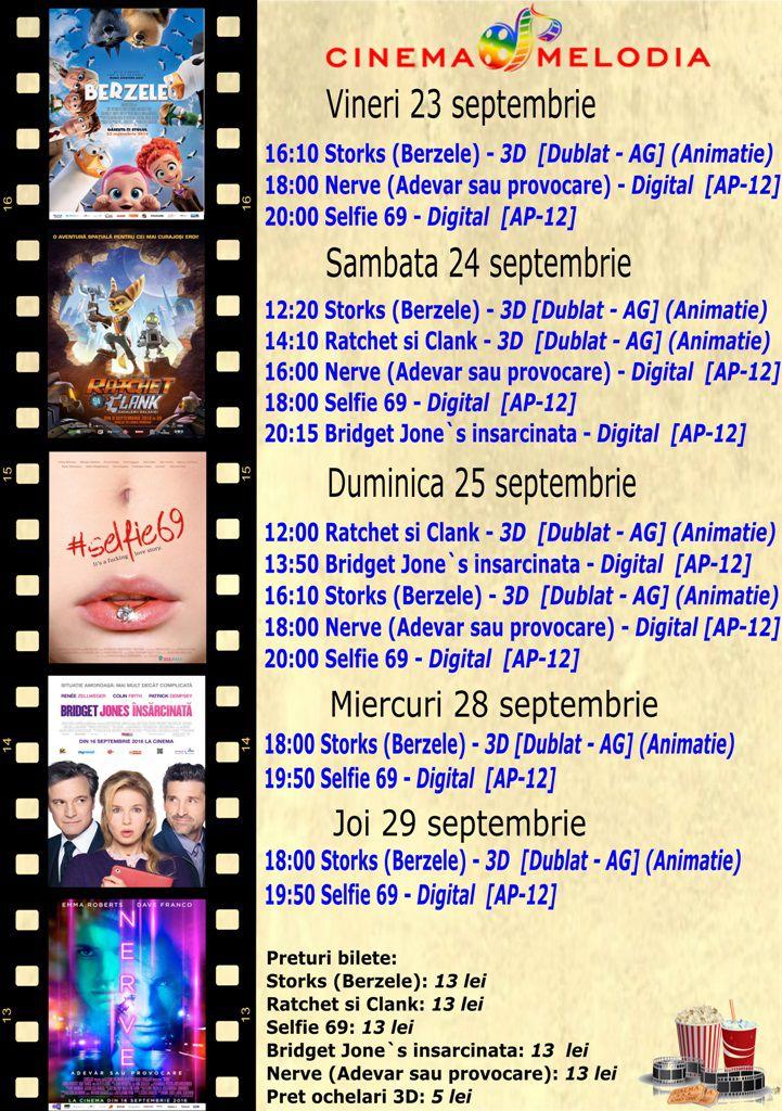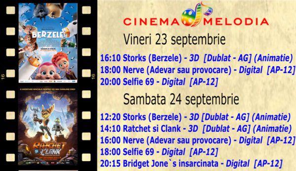 Filme de acţiune, animaţie, actiune dar şi thriller, este oferta cu care Cinematograful Melodia vine în această săptămână. Biletele pot fi rezervate la numărul de telefon: 0729.000.094