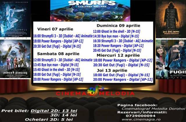 Filme de acţiune, animaţie, actiune dar şi thriller, este oferta cu care Cinematograful Melodia vine în această săptămână. Biletele pot fi rezervate la numărul de telefon: 0729.000.094