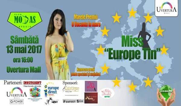 Va asteptam Sambata 13.Mai.2017 ora 16.00, la Concursul de frumusete Miss “EuropeTIN” 2017 – organizat de “Club MODAS Studio” si prilejuit de Ziua Europei din data de 9 Mai si a Zilei Nationale a Tineretului din data de 2 Mai, spectacol ajuns la a treia editie si care a incantat de-a lungul timpului ochii tinerilor si sustinatorilor de la prima editie din 2015 si pana astazi!