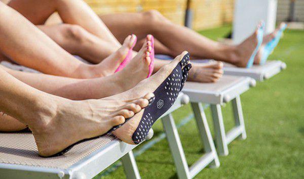 Acestea sunt livrate în trei culori: negru, roz şi albastru şi se lipesc foarte usor de talpa piciorului. Cu aceşti "şlapi" de plajă ne putem lua adio de la modelele vechi! Sursă: Bored Panda