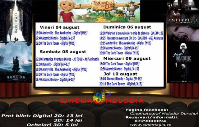 Filme de acţiune, animaţie, actiune dar şi thriller, este oferta cu care Cinematograful Melodia vine în această săptămână. Biletele pot fi rezervate la numărul de telefon: 0729.000.094