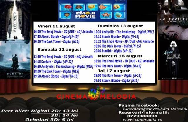 Filme de acţiune, animaţie, actiune dar şi thriller, este oferta cu care Cinematograful Melodia vine în această săptămână. Biletele pot fi rezervate la numărul de telefon: 0729.000.094