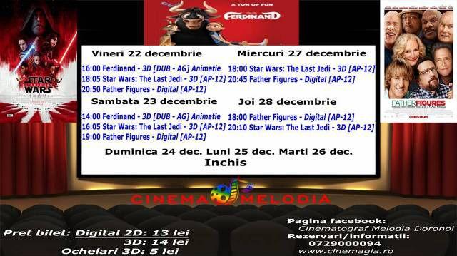 Filme de acţiune, animaţie, actiune dar şi thriller, este oferta cu care Cinematograful Melodia vine în această săptămână. Biletele pot fi rezervate la numărul de telefon: 0729.000.094.