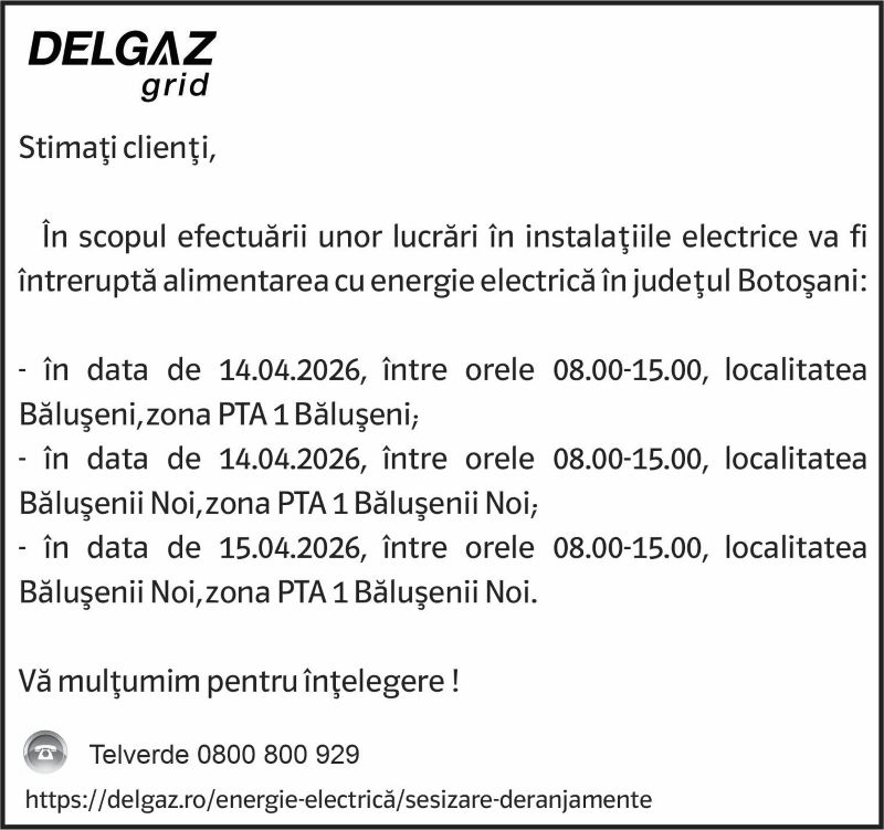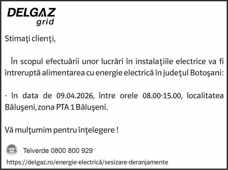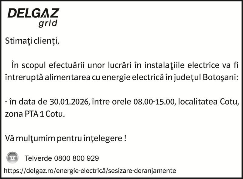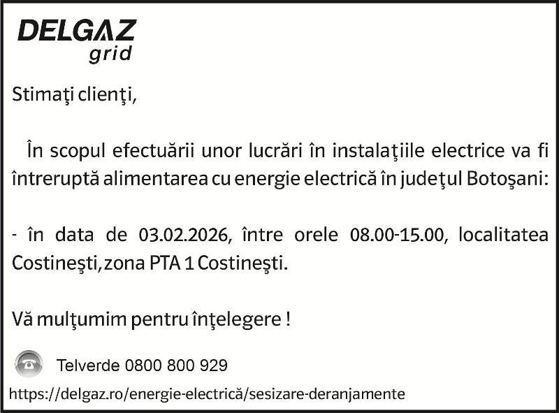 DELGAZ grid - Anunt intrerupere energie electrica. Vezi zonele vizate!