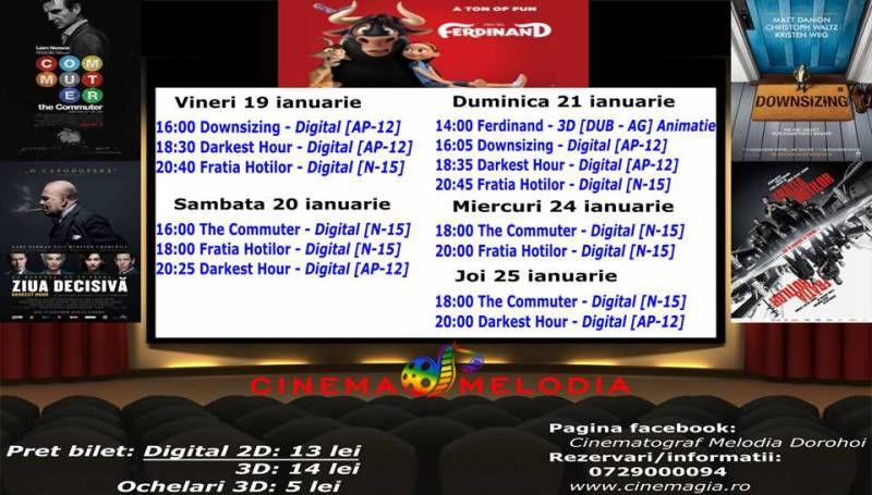 Filme de acţiune, animaţie, actiune dar şi thriller, este oferta cu care Cinematograful Melodia vine în această săptămână. Biletele pot fi rezervate la numărul de telefon: 0729.000.094.