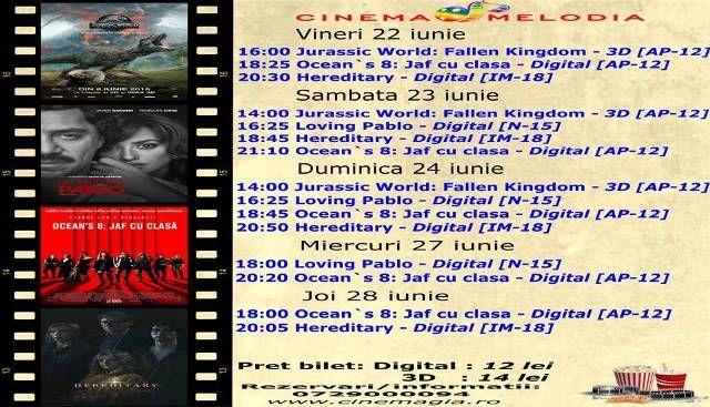 Filme de acţiune, animaţie, actiune dar şi thriller, este oferta cu care Cinematograful Melodia vine în această săptămână. Biletele pot fi rezervate la numărul de telefon: 0729.000.094.