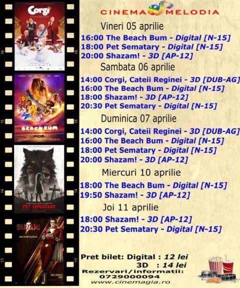 Filme de acţiune, animaţie, actiune dar şi thriller, este oferta cu care Cinematograful Melodia vine în această săptămână. Biletele pot fi rezervate la numărul de telefon: 0729.000.094.