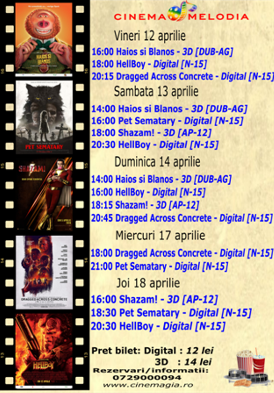 Filme de acţiune, animaţie, actiune dar şi thriller, este oferta cu care Cinematograful Melodia vine în această săptămână. Biletele pot fi rezervate la numărul de telefon: 0729.000.094.