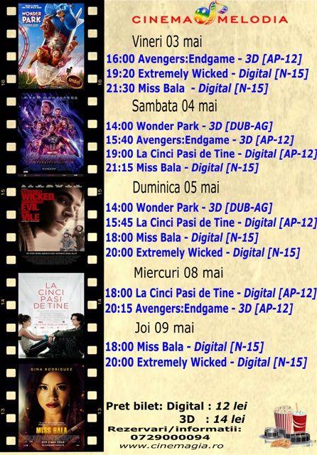 Filme de acţiune, animaţie, actiune dar şi thriller, este oferta cu care Cinematograful Melodia vine în această săptămână. Biletele pot fi rezervate la numărul de telefon: 0729.000.094.