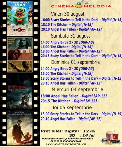 Filme de acţiune, animaţie, actiune dar şi thriller, este oferta cu care Cinematograful Melodia vine în această săptămână. Biletele pot fi rezervate la numărul de telefon: 0729000094 .