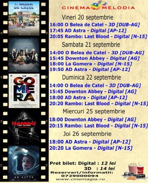 Filme de acţiune, animaţie, actiune dar şi thriller, este oferta cu care Cinematograful Melodia vine în această săptămână. Biletele pot fi rezervate la numărul de telefon: 0729000094 .
