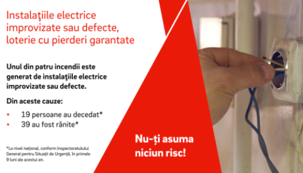 În primele nouă luni ale anului, la nivel național, conform datelor Inspectoratului General pentru Situaţii de Urgenţă, 19 persoane au decedat şi 39 au fost rănite din cauza instalaţiilor electrice defecte sau improvizate. Din păcate, la această statistică îngrijorătoare, se adaugă 9 persoane care și-au pierdut viața și alte 31 de persoane care au avut de suferit ca urmare a unor incidente cauzate de aparate electrice lăsate sub tensiune.