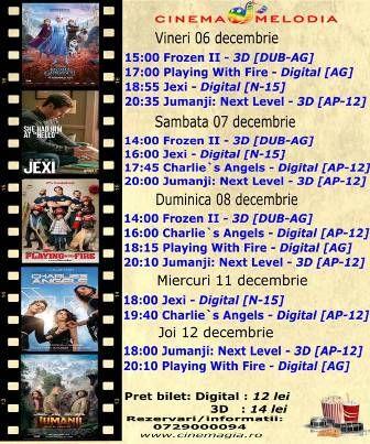Filme de acţiune, animaţie, actiune dar şi thriller, este oferta cu care Cinematograful Melodia vine în această săptămână. Biletele pot fi rezervate la numărul de telefon: 0729000094 .