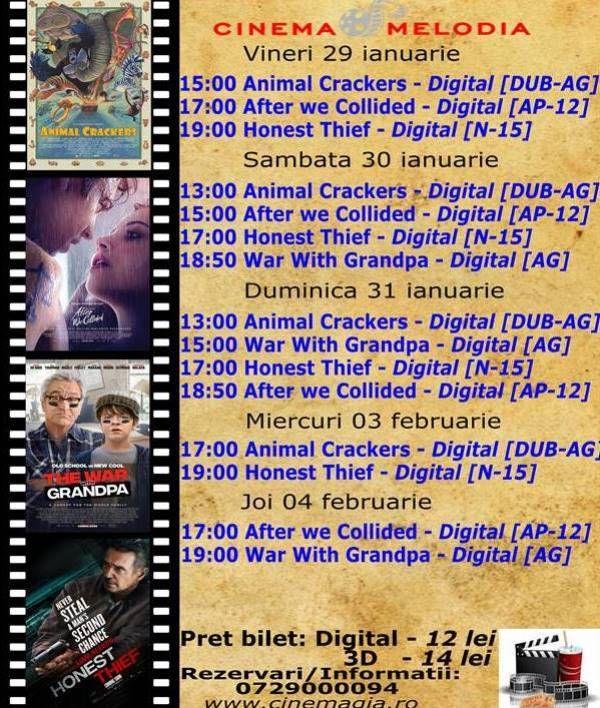 Filme de acţiune, animaţie, actiune dar şi thriller, este oferta cu care Cinematograful Melodia vine în această săptămână. Biletele pot fi rezervate la numărul de telefon: 0729000094.