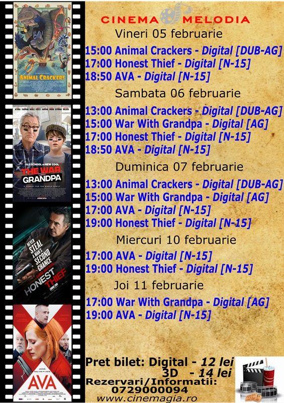 Filme de acţiune, animaţie, actiune dar şi thriller, este oferta cu care Cinematograful Melodia vine în această săptămână. Biletele pot fi rezervate la numărul de telefon: 0729000094.