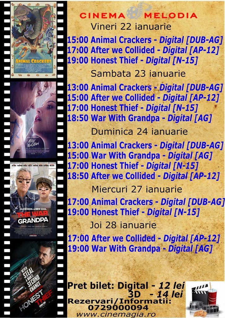 Filme de acţiune, animaţie, actiune dar şi thriller, este oferta cu care Cinematograful Melodia vine în această săptămână. Biletele pot fi rezervate la numărul de telefon: 0729000094.