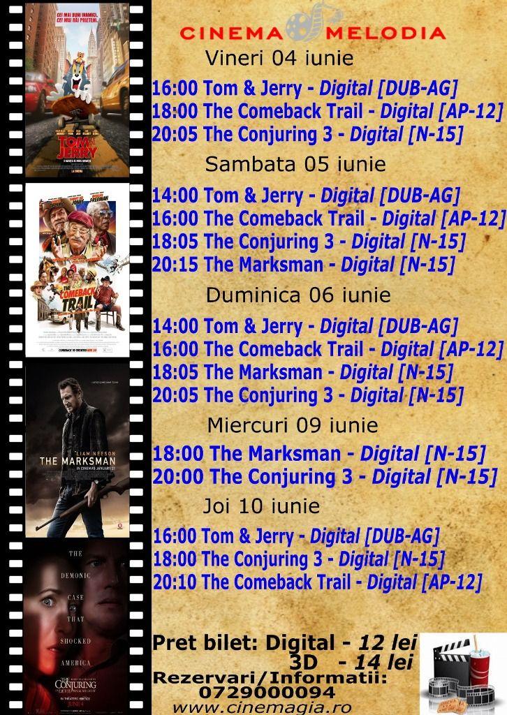 Filme de acţiune, animaţie, actiune dar şi thriller, este oferta cu care Cinematograful Melodia vine în această săptămână. Biletele pot fi rezervate la numărul de telefon: 0729000094.