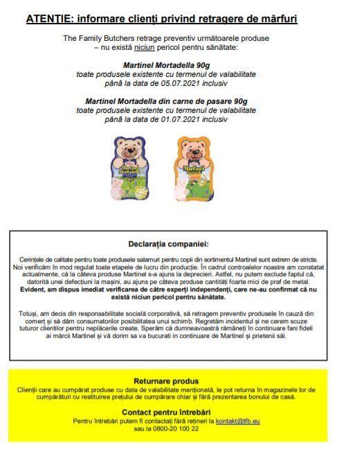 „În primul rând aș vrea să atrag atenția că este o măsură de prevenție a producătorului ca urmare a unei defecțiuni la o linie de feliere și ambalare pentru a exclude posibilitatea ca pe suprafața unor produse să existe urme minime de praf de metal. Nu este vorba despre reziduri de metale grele în produs.