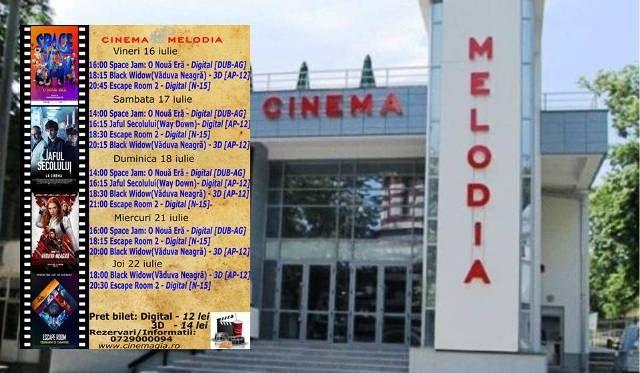 Filme de acţiune, animaţie, actiune dar şi thriller, este oferta cu care Cinematograful Melodia vine în această săptămână. Biletele pot fi rezervate la numărul de telefon: 0729000094.