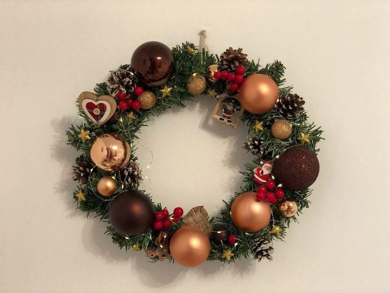Aceasta pregătește decorațiuni de Crăciun lucrate manual, coronițe și aranjamente, diferite culori și modele, la comandă, culorile și design-ul fiind adaptate preferințelor dumneavoastră.